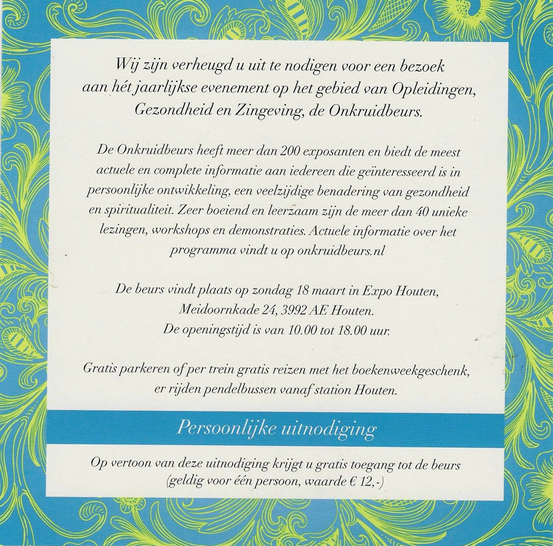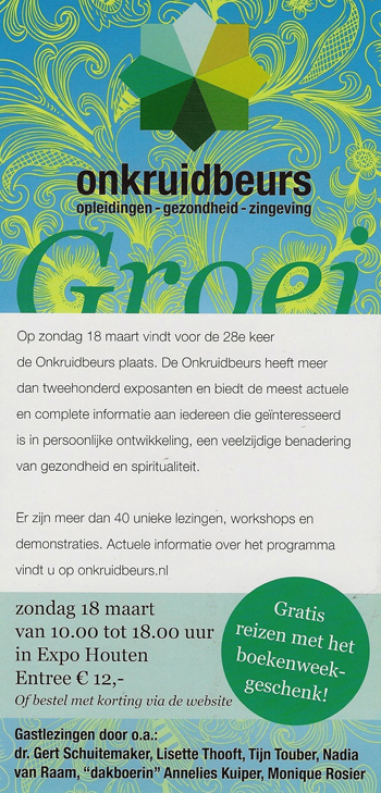 Via ons kunt u goedkoop de Onkruidbeurs van dit jaar bezoeken van € 12,00 voor € 7,95 (incl verzendkosten).